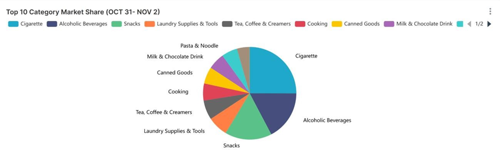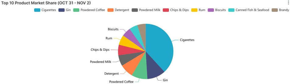 Even with the increasing market share for alcohol, Sari IQ finds that daily sales during “Undas” were typically lower than in the whole month of October, where total sales daily decreased by 19.78%.
