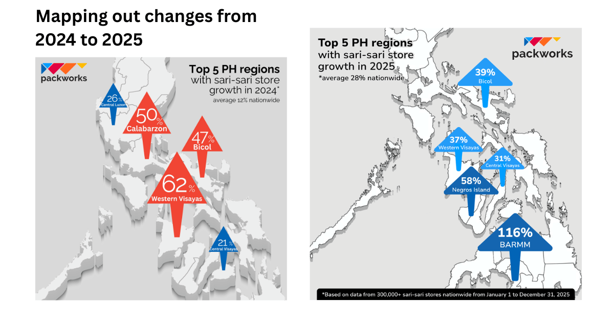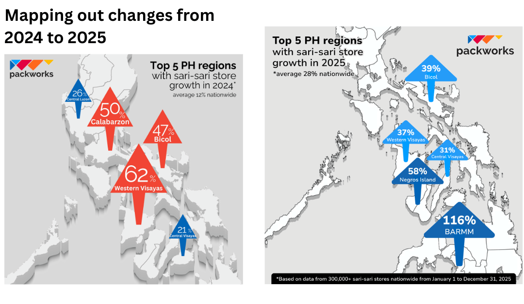 “As store owners in the provinces gain access to more resources, they are proving to be the economic backbone of their communities. The surge in the regions shows that sari-sari stores are not just local fixtures, but are evolving businesses capable of driving regional economic momentum,” said Packworks co-founder Hubert Yap.